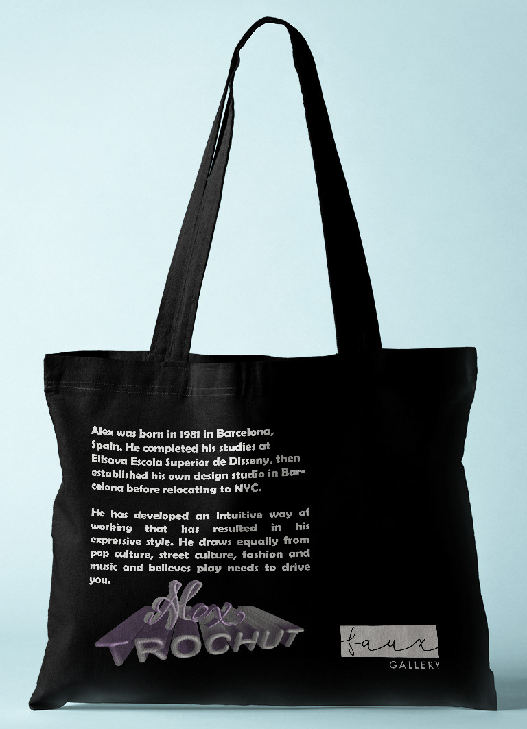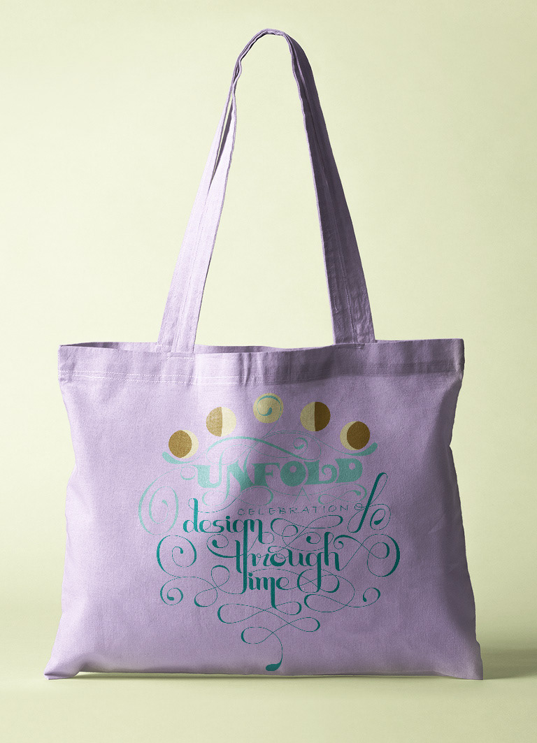 I created two tote bag designs for Faux Gallery’s Unfold exhibition, inspired by the typographic styles of Jessica Hische and Alex Trochut. Each front features a typographic composition reflecting the designer’s era and personal style, while the reverse includes a written artist bio and artist name styled to match.
